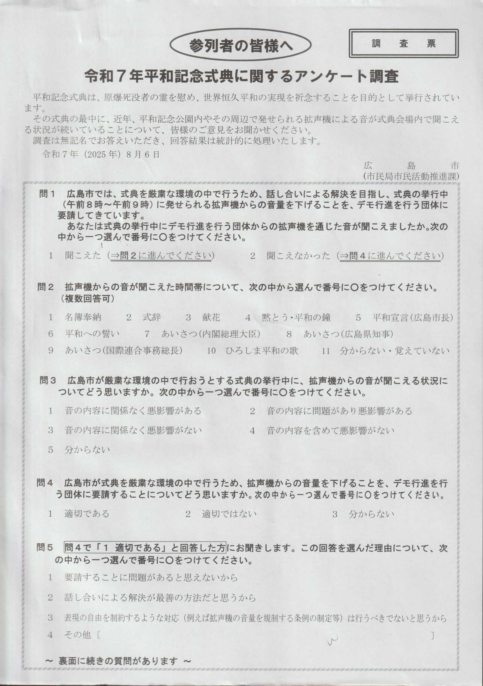 【2025年和平紀念儀式調查表A】