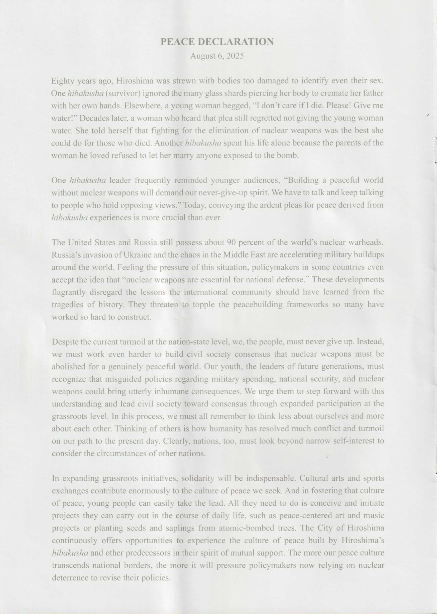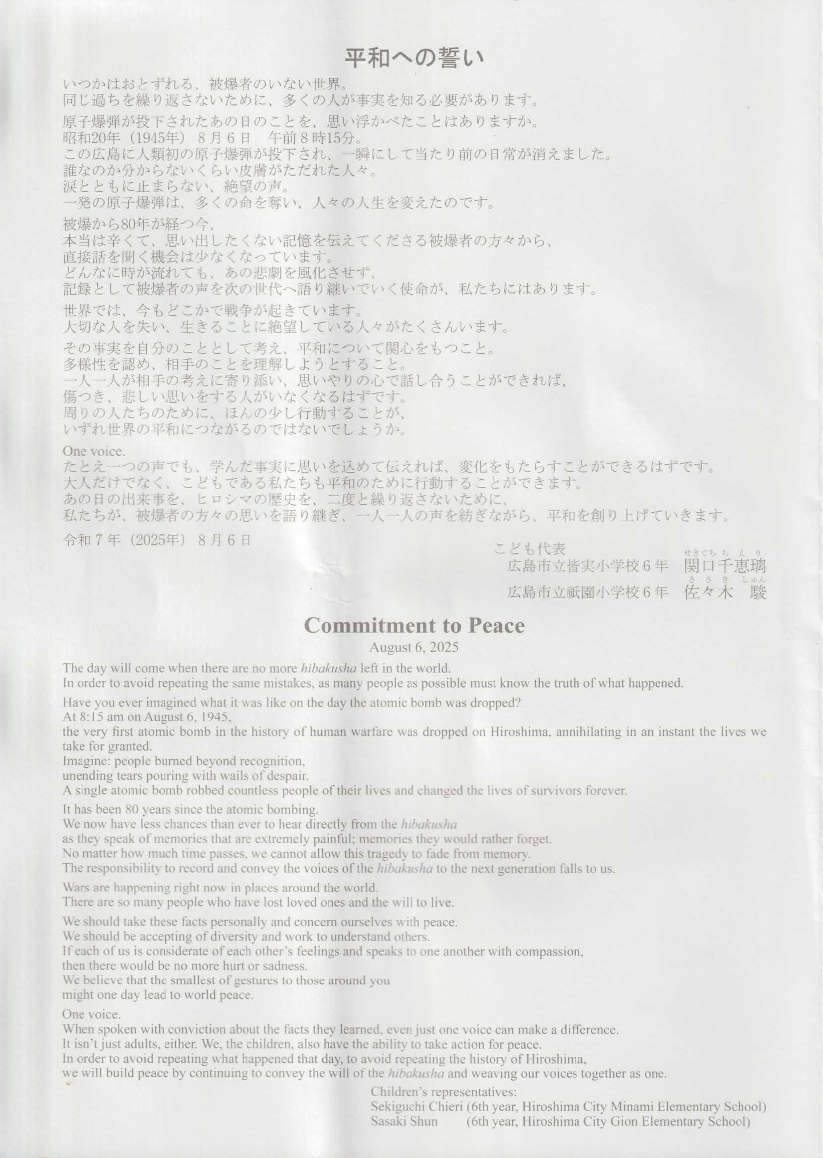 2025 (令和7) 年 8 月 6 日 廣島平和記念式典