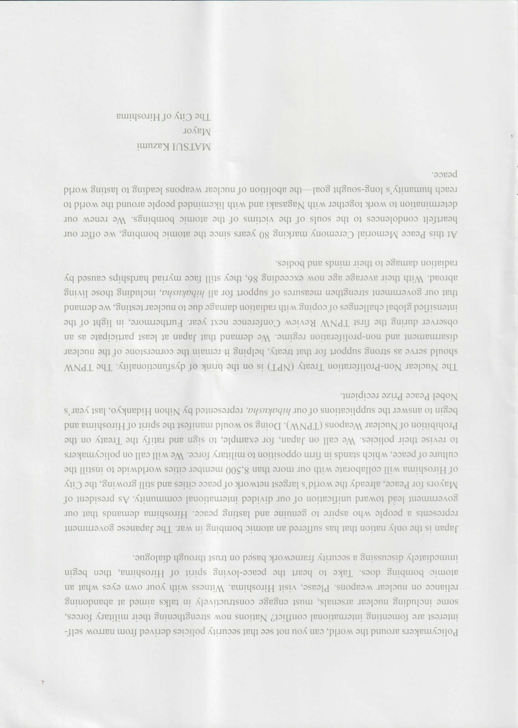 行政主席 蔡財源 代表台灣民政府全體人員,參加 原爆80周年 廣島長崎 犧牲者慰霊平和祈念式典。