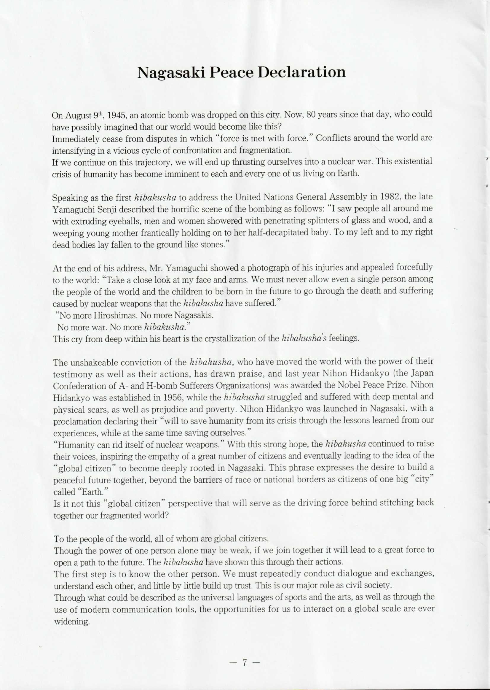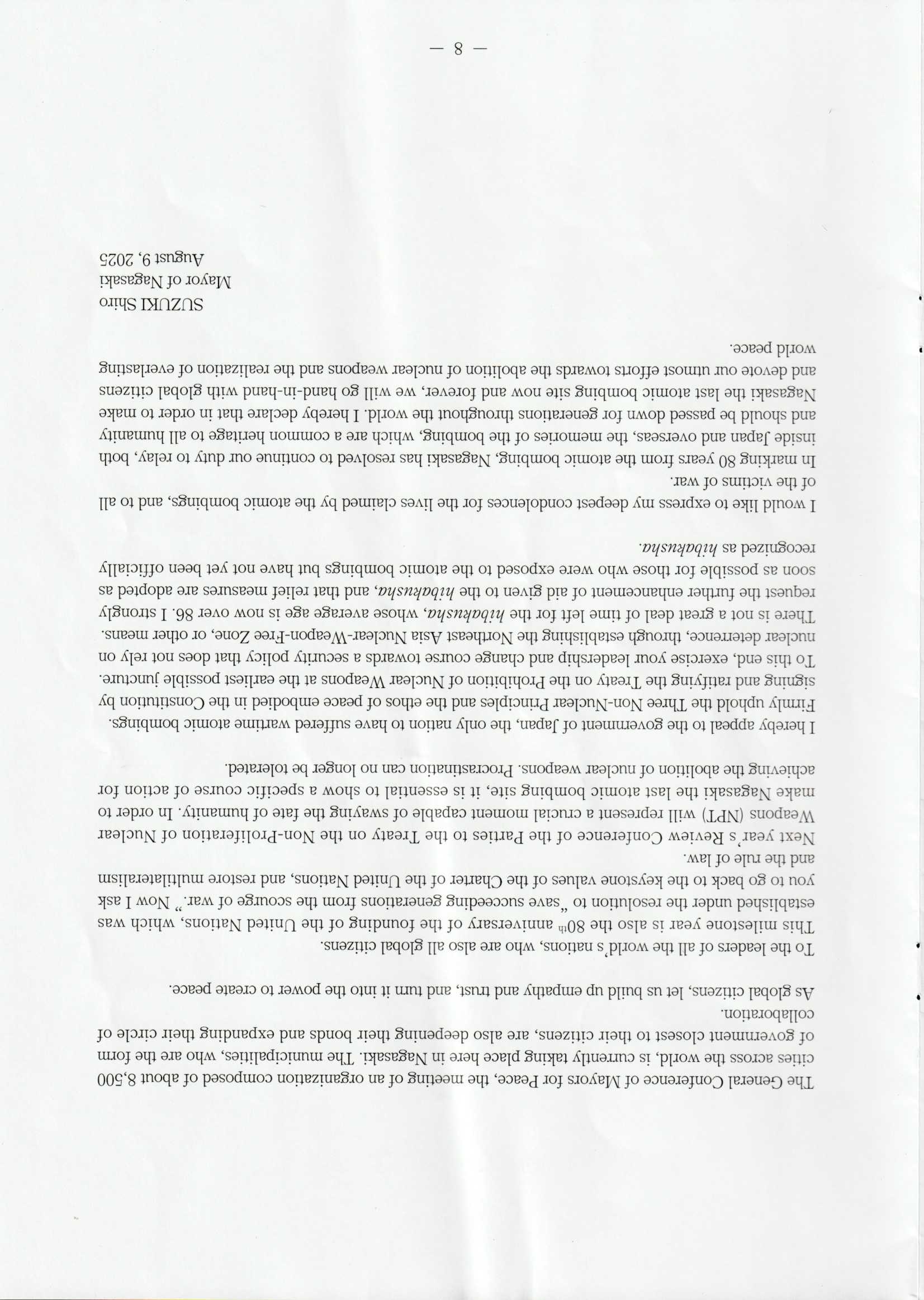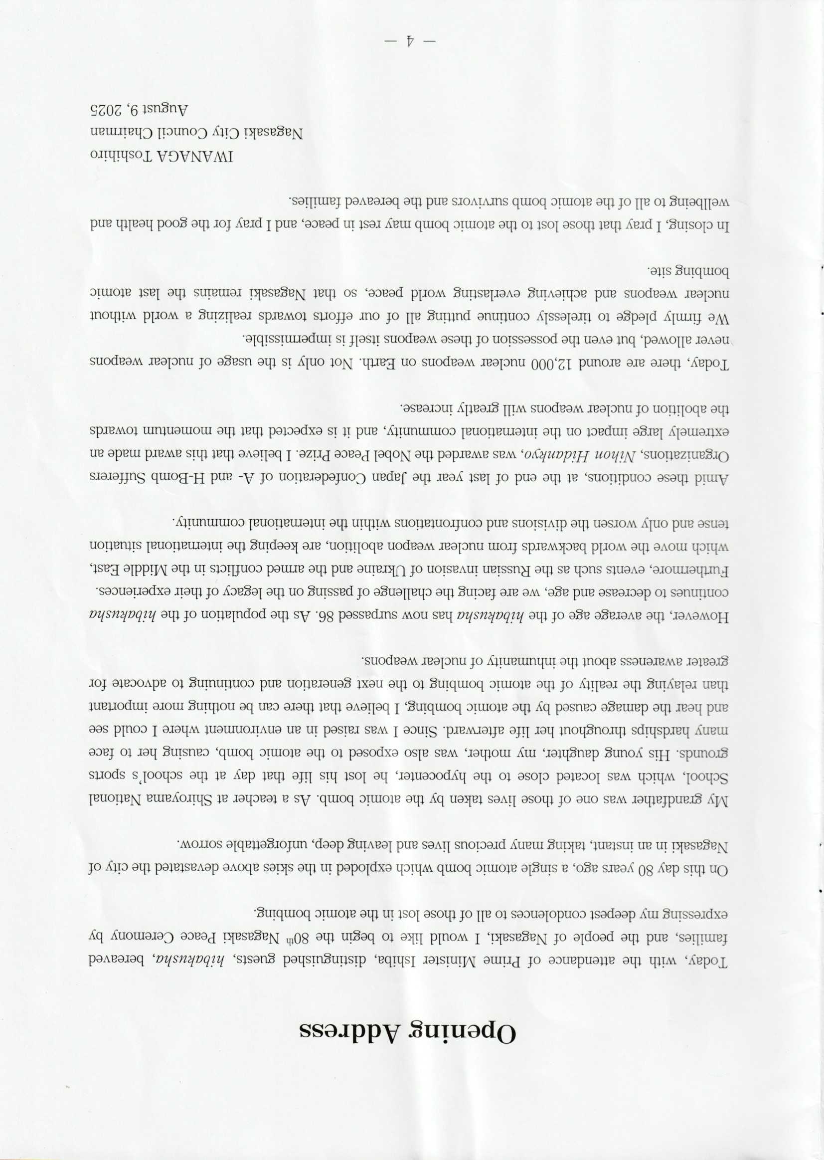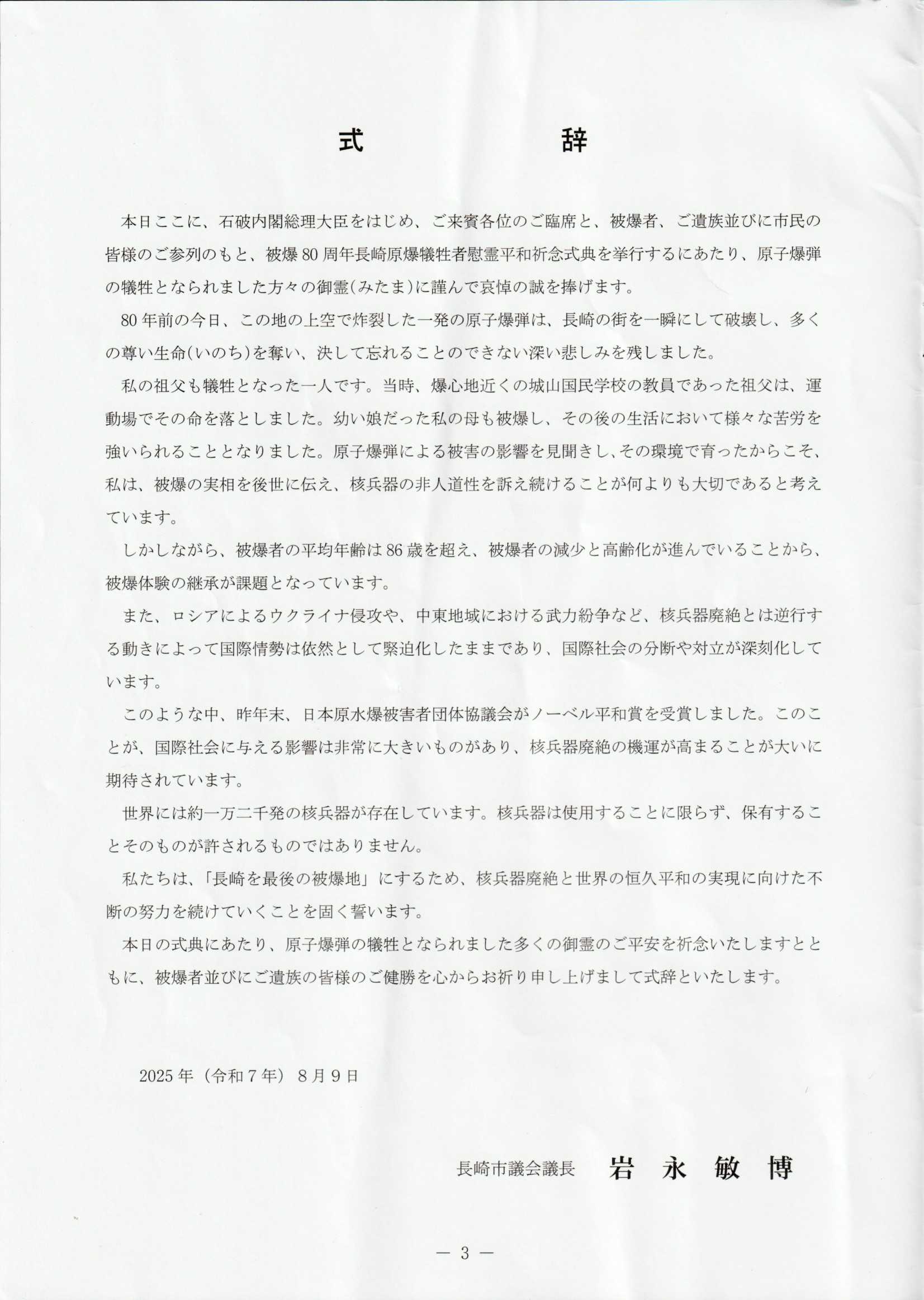 2025 (令和7) 年 8 月 6 日 長崎平和記念式典 當日
