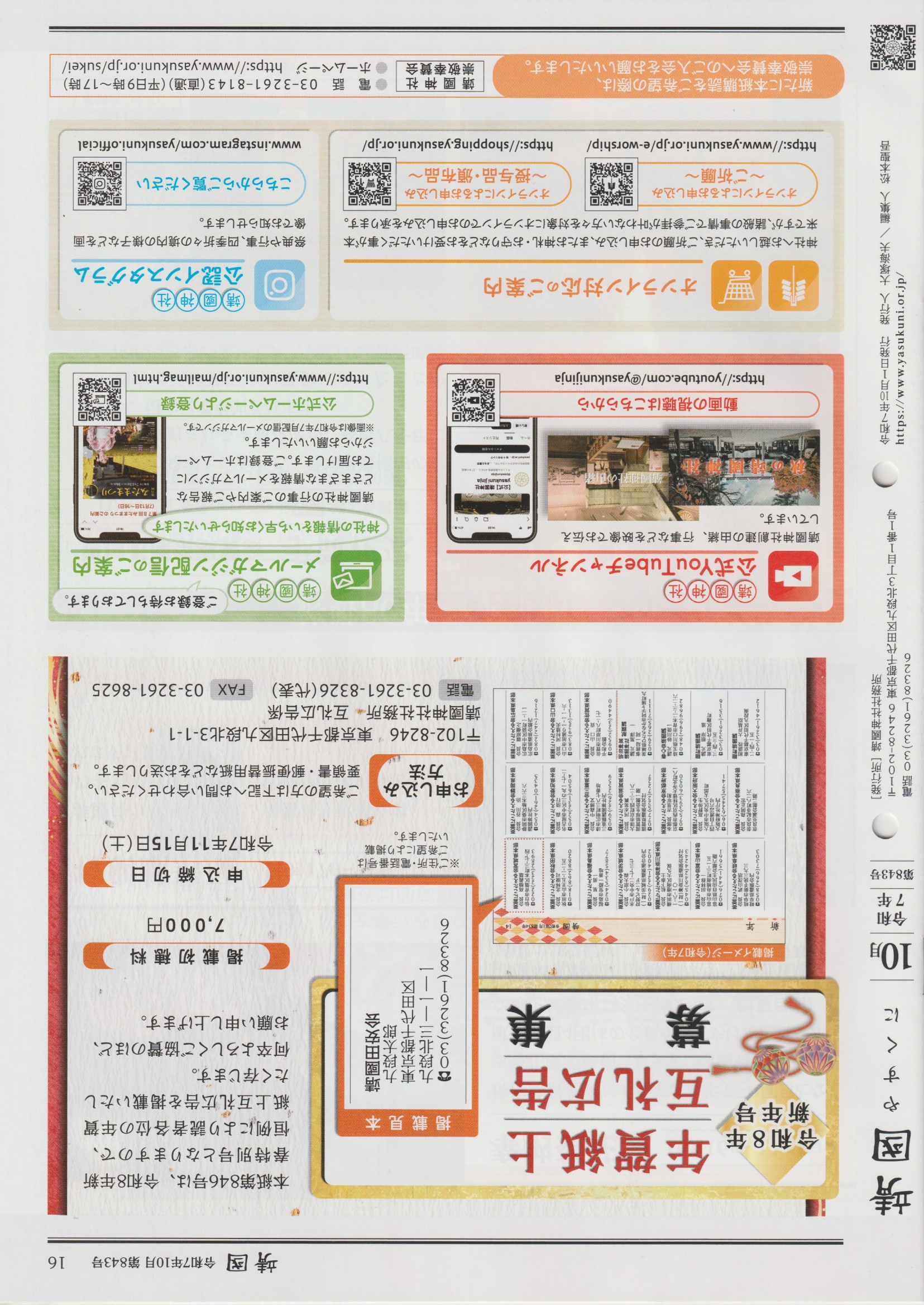 令和7年 靖國神社 台灣民政府 團體會員 10月 11月 12月的月刊已寄到 總部 map:https://g.page/usmgtcgov